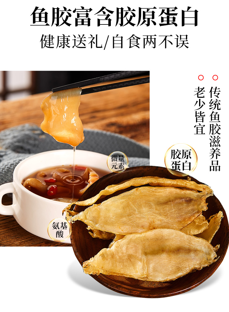 花膠即魚肚,是各類魚鰾的干制品,以富有膠質(zhì)而著名,故名為花膠?;z又名魚肚,是從魚腹中取出魚鰾,切開曬干后而成?;z含有豐富的蛋白質(zhì)、膠質(zhì)等,食療有滋陰養(yǎng)顏、固腎培精之效,可令人迅速消除疲勞。頂級魚肚排名依次是魚膠之王:金錢鳘魚膠、白花膠、黃鱘膠、黃花膠、鳘魚膠。花膠不僅是筵席名菜,還有相當(dāng)?shù)淖萄a(bǔ)價值。